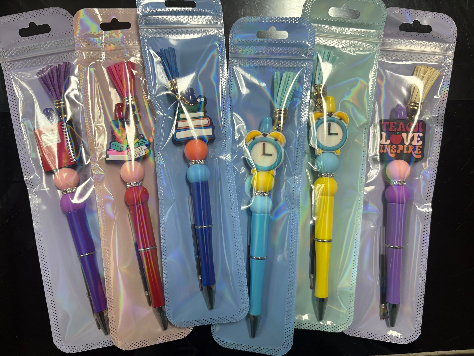 3 Hand-Made Beaded Pens for Teacher Gifts (Random colors & random design)